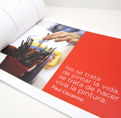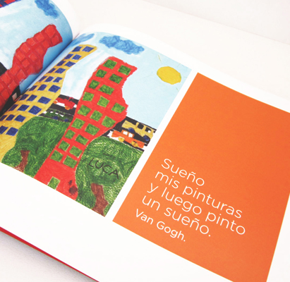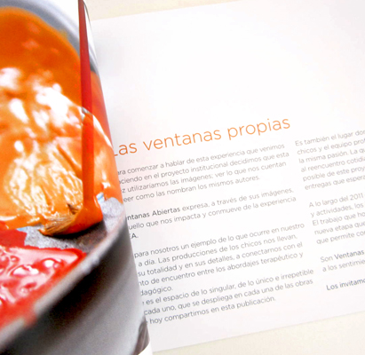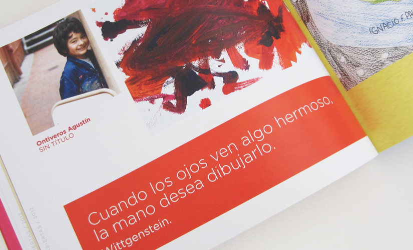 | Diseño de un libro que resume el trabajo anual del taller de arte para niños y adolescentes con trastornos generalizados del desarrollo. / Fotografía: Daniela Amdan. |